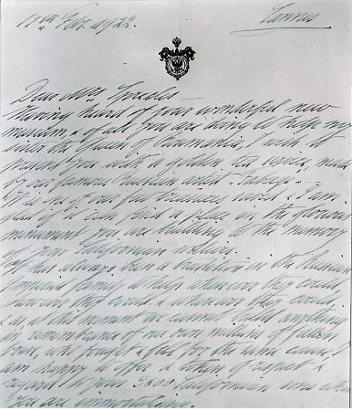 She is looking forward with the greatest interest and pleasure to her short stay here; but beyond her expectation of meeting American friends and visiting some places of interest, she has formed no plans.[63]